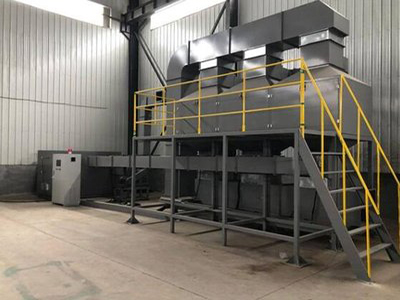 廢氣催化燃燒設備為防止活性炭堵塞,廢氣進入設備前需增設干式過濾器進行預處理,把廢氣中的雜質(zhì)及顆粒物進行過濾,確保活性炭的使用壽命。脫附后的氣體經(jīng)阻火器、進氣閥、換熱器、電加熱器(預熱器)升溫,使氣體溫度升至催化燃燒所需要的溫度,在催化床內(nèi)的催化劑的作用下分解成水和二氧化。