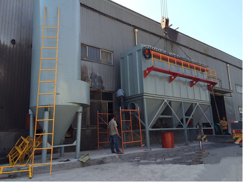 含塵煙氣由進(jìn)風(fēng)管道進(jìn)入中箱體下部,在擋風(fēng)板形成的預(yù)分離室內(nèi),較大顆粒粉塵因慣性作用落入灰斗。煙氣向上到達(dá)濾袋,粉塵被阻留在濾袋外面,凈化后的煙氣進(jìn)入袋內(nèi),并經(jīng)袋口進(jìn)入上箱體,后經(jīng)氣動提升閥由出風(fēng)管道排出。