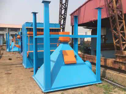 本除塵器由上、中、下箱體、排灰裝置及噴吹清灰系統五部分組成。上箱體包括可掀起的頂蓋和出風口。中箱體內有花板、濾袋組件、防爆泄壓閥、_濾袋等。下箱體有灰斗,進風口及檢修門。排灰裝置為重力卸灰閥或者回轉卸料閥。噴吹清灰系統由脈沖控制儀,電磁氣閥,噴吹管及氣包組成。